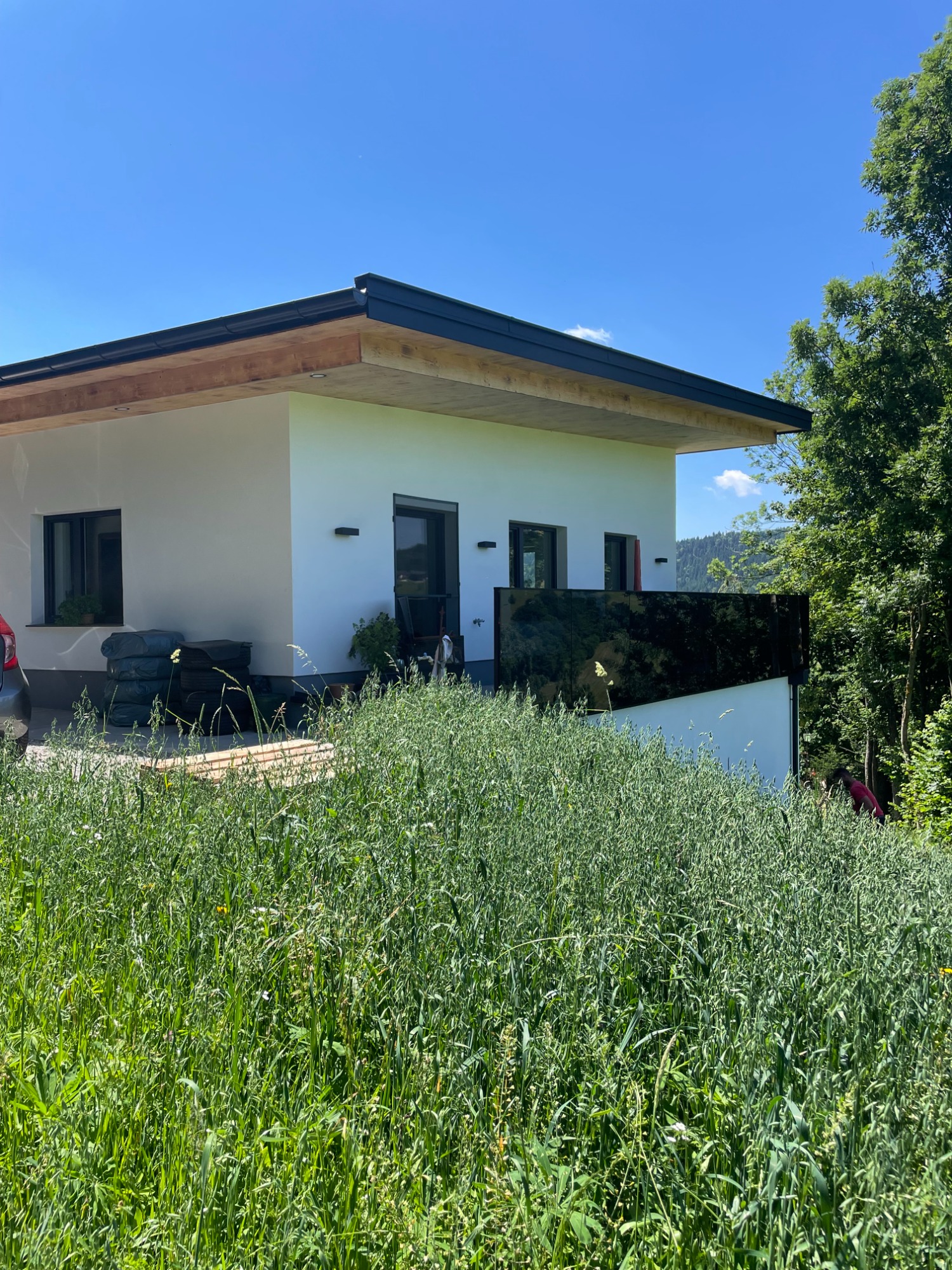 Ebenfalls fand im Duschbereich eine in Schwarz matt Pulverbeschichtete Sockelleiste ihren Platz.